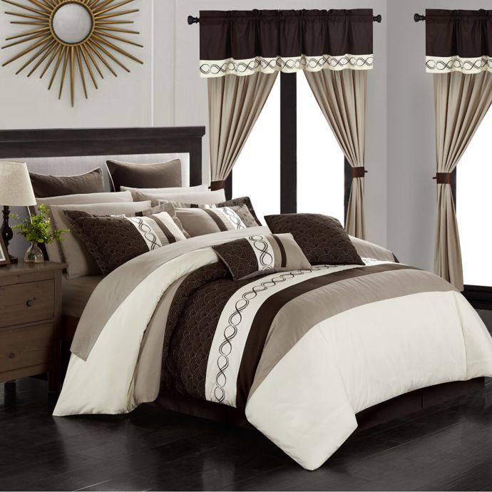Amazon Com Chic Home Idit 24 Piece Comforter Set Color Block Embroidered Design Complete Bed In A Bag Bedding Sheets Bed Skirt Decorative Pillows Shams Window Treatments Curtains Included Queen Navy Home