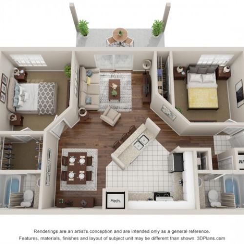 20 Awesome 3d Apartment Plans With Two Bedrooms Part 2